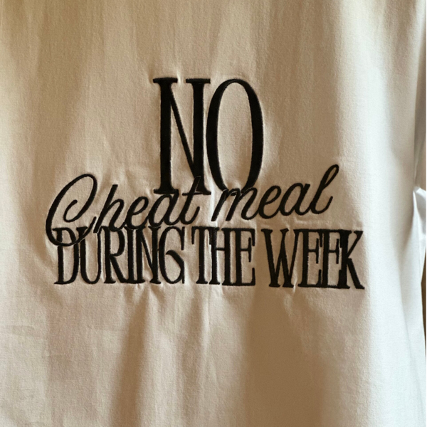 - Dos : inscription “NO cheat meal DURING THE WEEK”